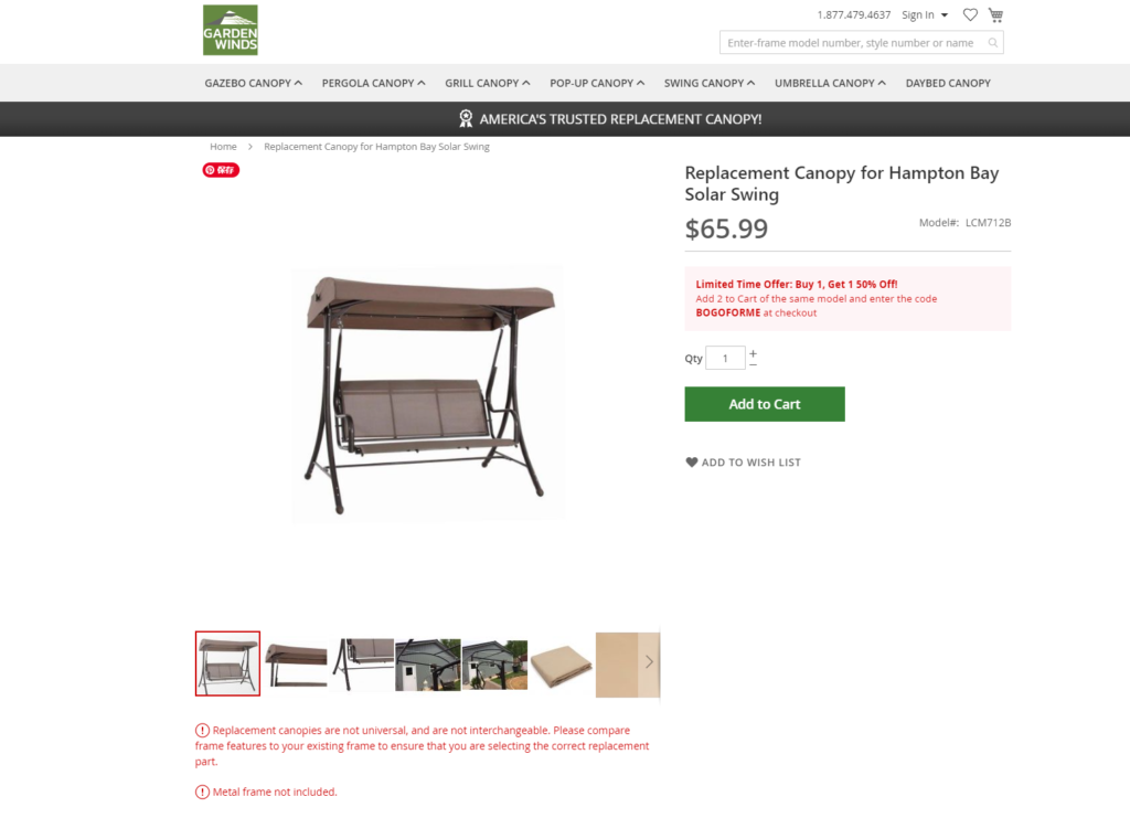 If your swing’s canopy has faded, torn, or become unusable, finding a new one is key to restoring your swing’s look and functionality.
