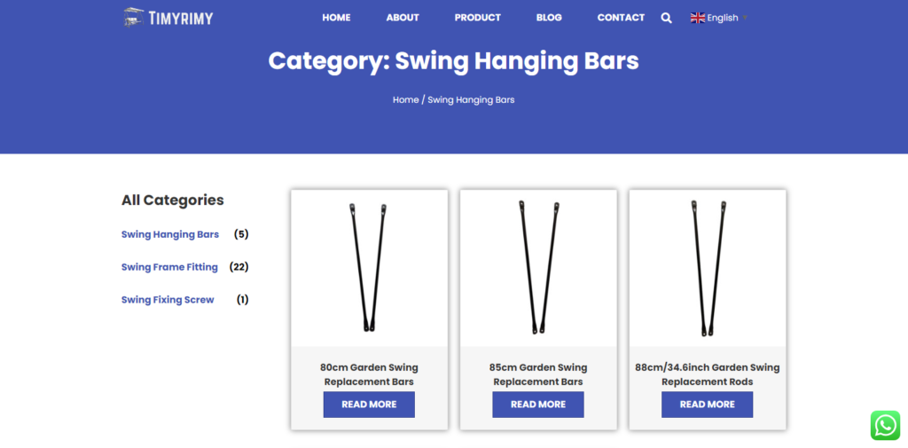 Swing arms made of metal are prone to rust and can easily break due to outdoor exposure. At Timyrimy, we offer a variety of replacement hanging arms in different sizes. If the replacement parts you need are not available among our current products, please email pictures of the broken original swing bars and the whole swing frame, along with the swing name, manufacturer’s model number, and required size information to info@timyrimy.com. We’ll do our best to assist you with a suitable replacement.
