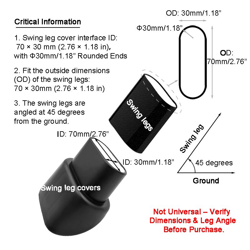 Porch Swing Feet Replacement Oval, 2-3/4″ x 1-3/16″(70x30mm) Black Angled Tube Insert Plastic Leg Caps(Set of 4)