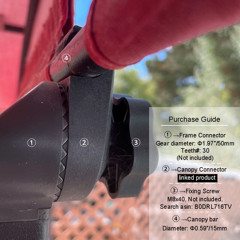 Timyrimy is not affiliated with Walmart or Mainstays Courtyard Creations. Timyrimy manufactures aftermarket replacement canopy/frame connectors for Mainstays Forest Hills Swing, the original canopy/frame connector code is 18020605001. The plastic screw shape and material are not the same as the original, original plastic screw code is 18000018001 .